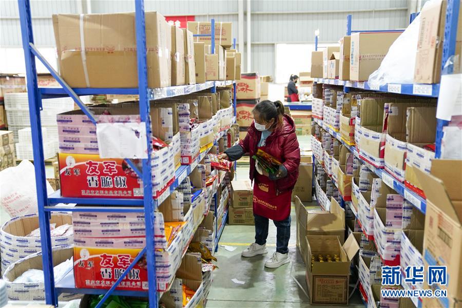 2月27日,在秀山(武陵)現(xiàn)代物流園區(qū)的電商云倉內(nèi),工人在按照訂單配貨。地處重慶市秀山縣的秀山(武陵)現(xiàn)代物流園區(qū),是渝湘黔三省市交界地區(qū)的區(qū)域性物流中心。重慶市秀山縣在做好新冠肺炎疫情防控工作前提下,當?shù)卣e極幫助電商、物流企業(yè)解決招工、運輸、銷售等方面的實際問題,推動秀山(武陵)現(xiàn)代物流園區(qū)快速進入全面復工復產(chǎn)階段。據(jù)介紹,隨著物流園區(qū)的電商和物流企業(yè)全面復工復產(chǎn),既滿足當?shù)厝罕姷奈镔Y供應,又幫助當?shù)剞r(nóng)產(chǎn)品通過電商平臺實現(xiàn)快速銷售。新華社記者劉潺攝