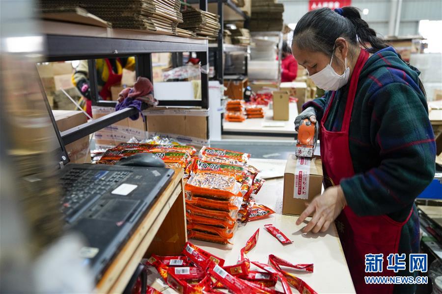 2月27日,在秀山(武陵)現(xiàn)代物流園區(qū)的電商云倉內(nèi),工人在打包包裹。地處重慶市秀山縣的秀山(武陵)現(xiàn)代物流園區(qū),是渝湘黔三省市交界地區(qū)的區(qū)域性物流中心。重慶市秀山縣在做好新冠肺炎疫情防控工作前提下,當?shù)卣e極幫助電商、物流企業(yè)解決招工、運輸、銷售等方面的實際問題,推動秀山(武陵)現(xiàn)代物流園區(qū)快速進入全面復工復產(chǎn)階段。據(jù)介紹,隨著物流園區(qū)的電商和物流企業(yè)全面復工復產(chǎn),既滿足當?shù)厝罕姷奈镔Y供應,又幫助當?shù)剞r(nóng)產(chǎn)品通過電商平臺實現(xiàn)快速銷售。新華社記者劉潺攝