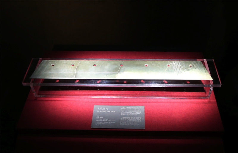 2019年10月19日,河南洛陽,二里頭夏都遺址博物館。“七孔玉刀”是二里頭夏都遺址出土的最大的玉器。