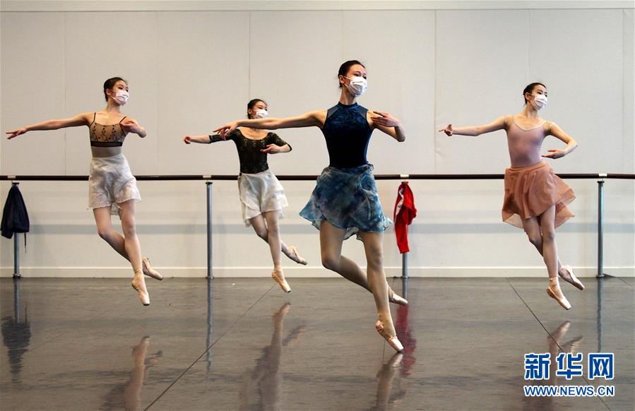 2月29日,在通過網絡直播的“公益公開課”上,上海芭蕾舞團團長辛麗麗(前右)在指導團員。新華社記者任瓏攝