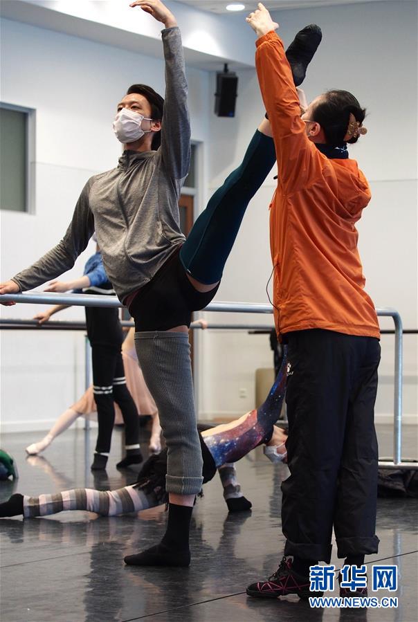 2月29日,在通過網(wǎng)絡直播的“公益公開課”上,上海芭蕾舞團團長辛麗麗(右)在指導首席演員吳虎生。新華社記者任瓏攝