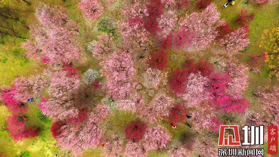 江蘇省揚(yáng)州市蜀岡西峰生態(tài)公園內(nèi)梅花競(jìng)相綻放,五顏六色的梅花樹為古城大地披上七彩春裝,美不勝收。