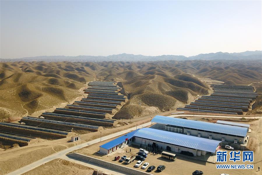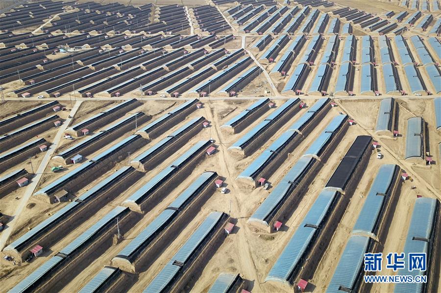 這是3月4日在靖遠(yuǎn)縣石門鄉(xiāng)路莊村易地扶貧搬遷搬入地——三灘鎮(zhèn)銀灘村拍攝的香菇大棚(無人機(jī)照片)。新華社記者 范培珅 攝