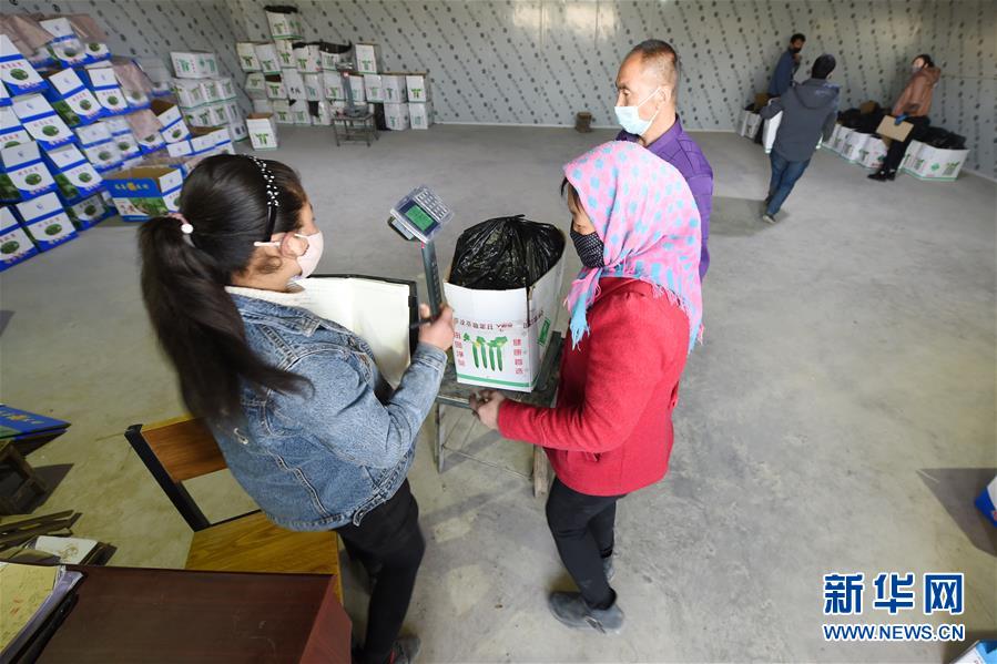 3月4日,在靖遠(yuǎn)縣北灣鎮(zhèn)新坪村農(nóng)貿(mào)市場,收購商收購農(nóng)民采摘的黃瓜。新華社記者 范培珅 攝