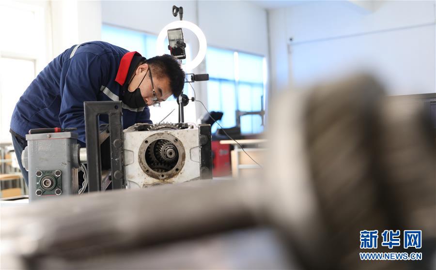 3月4日,職教城內(nèi)的鞍山市交通運輸學(xué)校的高峰老師為學(xué)生進行變速器檢修實訓(xùn)網(wǎng)絡(luò)授課。遼寧省鞍山市職教城內(nèi)的各類職業(yè)教育學(xué)校從3月2日恢復(fù)網(wǎng)絡(luò)授課以來,教師們設(shè)置了豐富多彩的課程,提高1萬余名學(xué)生線上學(xué)習(xí)的積極性。新華社記者姚劍鋒 攝