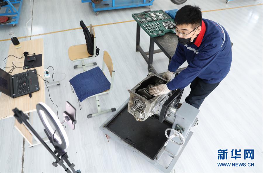 3月4日,職教城內(nèi)的鞍山市交通運(yùn)輸學(xué)校的高峰老師為學(xué)生進(jìn)行變速器檢修實(shí)訓(xùn)網(wǎng)絡(luò)授課。遼寧省鞍山市職教城內(nèi)的各類職業(yè)教育學(xué)校從3月2日恢復(fù)網(wǎng)絡(luò)授課以來,教師們設(shè)置了豐富多彩的課程,提高1萬余名學(xué)生線上學(xué)習(xí)的積極性。新華社記者姚劍鋒 攝