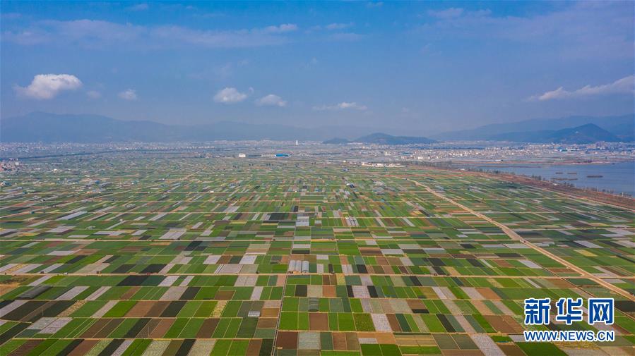 時(shí)下正值農(nóng)忙時(shí)節(jié),云南省玉溪市通??h的農(nóng)作物長勢(shì)喜人,山巒、湖水與農(nóng)田組成了一幅美麗的田園詩畫卷。