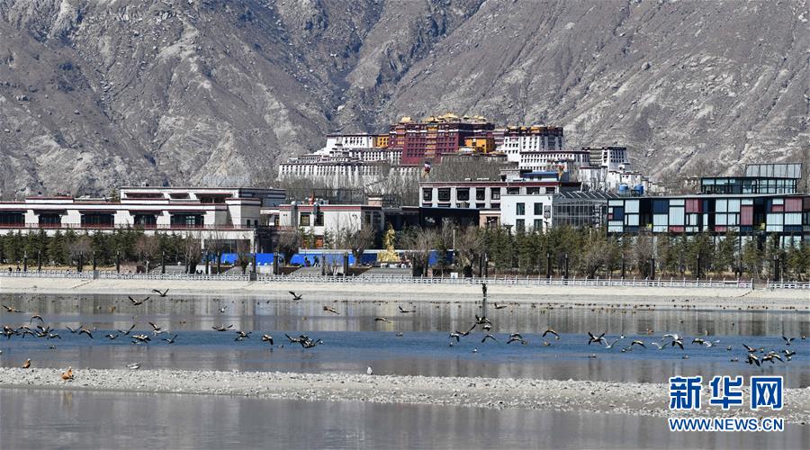 拉薩河上水鳥飛翔(3月10日攝)。 隨著氣候回暖,西藏的春天悄然到來。在“日光城”拉薩,高原大地從寒冬中漸漸醒來。 新華社記者 晉美多吉 攝