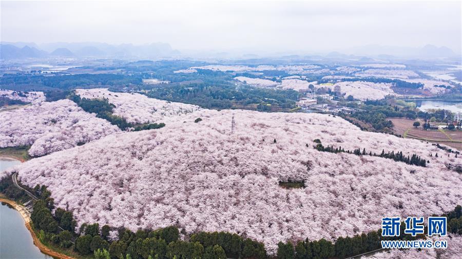 3月12日拍攝的貴安新區(qū)櫻花觀光園風景。 近日,貴州省貴安新區(qū)櫻花觀光園內櫻花競相盛開,花團錦簇間春意盎然。據介紹,疫情防控期間,為避免人群聚集,櫻花園暫不接待游客。 新華社記者 陶亮 攝