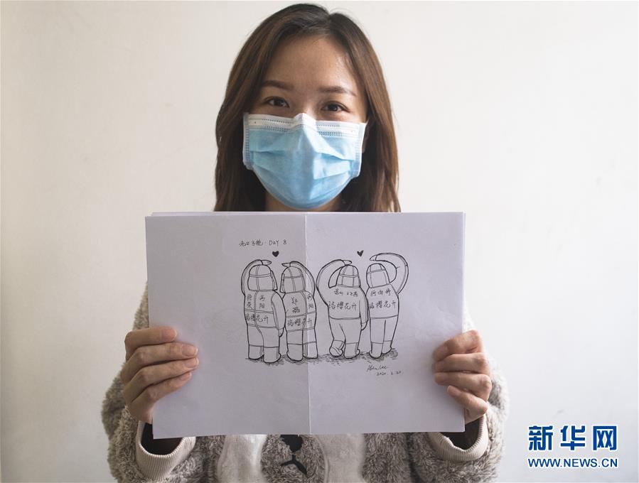 3月13日,黎婧展示自己在疫情期間創(chuàng)作的插畫。 3月12日,插畫師黎婧和84位病友離開自己居住的武漢軟件工程職業(yè)學(xué)院康復(fù)驛站,回到自己家中。他們都是治愈出院的新冠病毒肺炎患者,已經(jīng)在武漢軟件工程職業(yè)學(xué)院康復(fù)驛站進(jìn)行了14天醫(yī)學(xué)觀察,達(dá)到醫(yī)學(xué)標(biāo)準(zhǔn),成功解除隔離。他們由專車運(yùn)送至所屬社區(qū)附近的集散點(diǎn)后,在社區(qū)工作人員的陪同下回家。 新華社記者 肖藝九 攝
