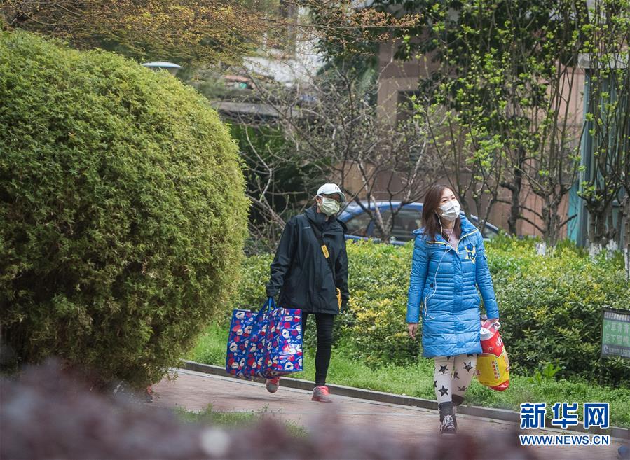 3月12日,小區(qū)樹葉綠了,黎婧(右)與網(wǎng)格員走在回家路上。 3月12日,插畫師黎婧和84位病友離開自己居住的武漢軟件工程職業(yè)學(xué)院康復(fù)驛站,回到自己家中。他們都是治愈出院的新冠病毒肺炎患者,已經(jīng)在武漢軟件工程職業(yè)學(xué)院康復(fù)驛站進(jìn)行了14天醫(yī)學(xué)觀察,達(dá)到醫(yī)學(xué)標(biāo)準(zhǔn),成功解除隔離。他們由專車運(yùn)送至所屬社區(qū)附近的集散點(diǎn)后,在社區(qū)工作人員的陪同下回家。 新華社記者 肖藝九 攝