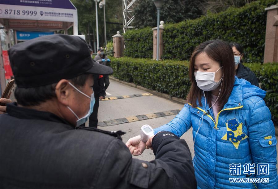 3月12日,小區(qū)安保人員對黎婧進(jìn)行體溫檢測。 3月12日,插畫師黎婧和84位病友離開自己居住的武漢軟件工程職業(yè)學(xué)院康復(fù)驛站,回到自己家中。他們都是治愈出院的新冠病毒肺炎患者,已經(jīng)在武漢軟件工程職業(yè)學(xué)院康復(fù)驛站進(jìn)行了14天醫(yī)學(xué)觀察,達(dá)到醫(yī)學(xué)標(biāo)準(zhǔn),成功解除隔離。他們由專車運(yùn)送至所屬社區(qū)附近的集散點(diǎn)后,在社區(qū)工作人員的陪同下回家。 新華社記者 肖藝九 攝