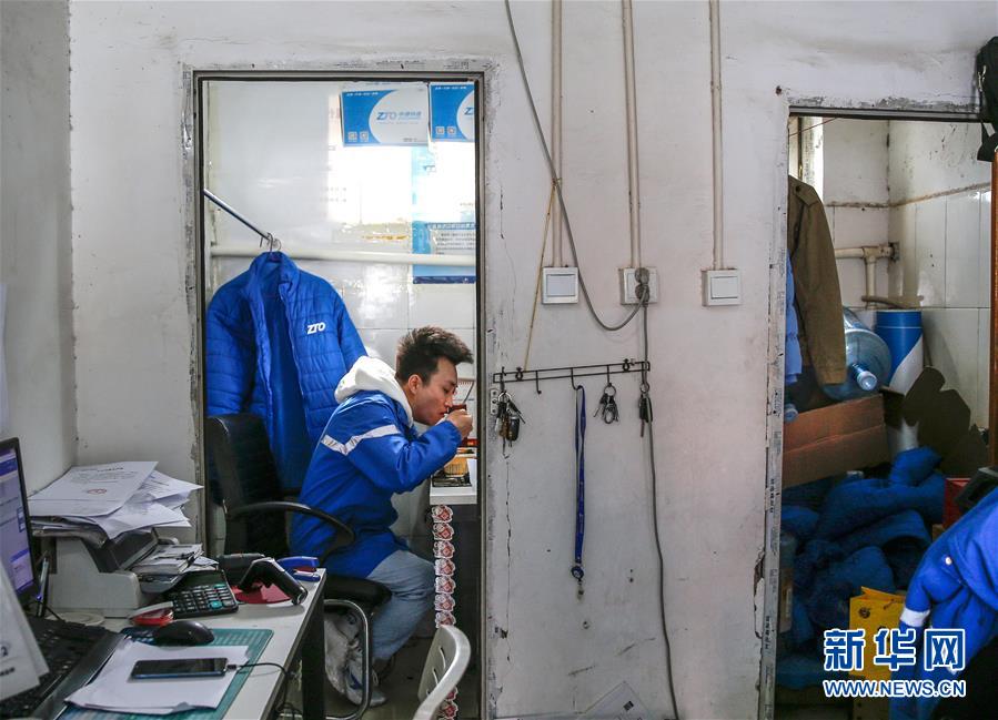 3月12日早晨,李杰在運送快遞的路上。新華社記者張玉薇攝