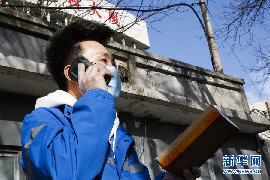 3月12日,李杰在運(yùn)送快遞的路上通過電話聯(lián)絡(luò)客戶。新華社記者張玉薇攝