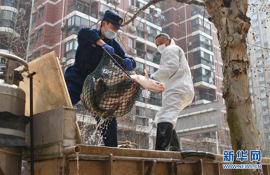 3月13日,武漢市消防救援支隊硚口大隊組織“119黨員突擊隊”等人員120余名,現(xiàn)場幫助將活魚配送到居民家中。當日,首批100噸調(diào)配自湖北省咸寧市的活魚運抵武漢市硚口區(qū)11個街道下轄社區(qū)。咸寧是魚米之鄉(xiāng),水產(chǎn)資源豐富。此次戰(zhàn)疫咸寧得到了全國人民的支持,疫情得到良好控制。咸寧送魚,希望傳遞愛心,支持武漢早日戰(zhàn)勝疫情。新華社記者程敏攝
