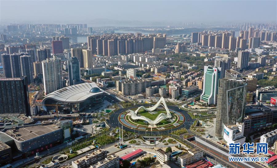 這是3月15日拍攝的武漢光谷廣場(chǎng)及周邊樓房(無人機(jī)照片)。 3月15日,江城武漢天氣晴好,整個(gè)城市沐浴在和煦的春光中。 新華社記者 李賀 攝