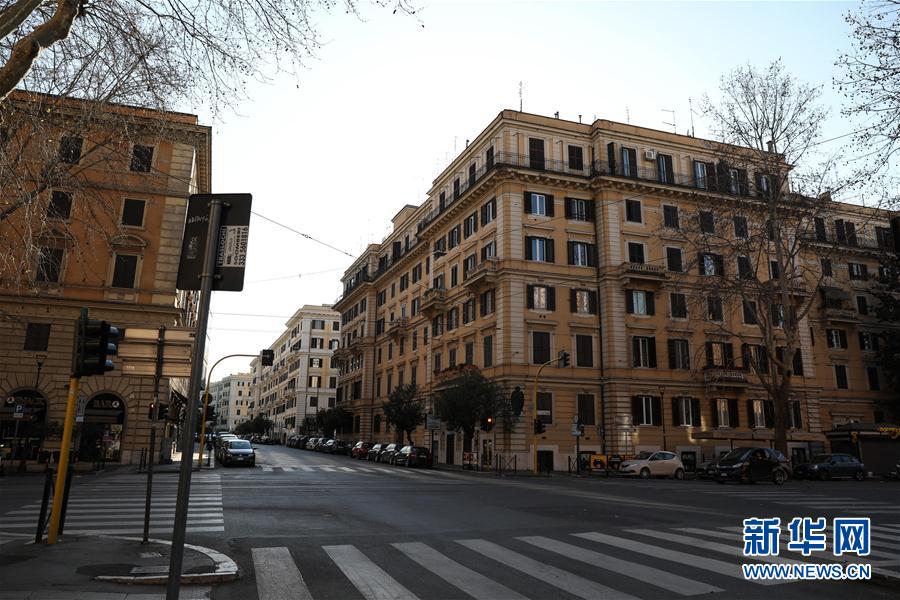 3月15日,在意大利首都羅馬,街頭空無一人。新華社記者程婷婷攝