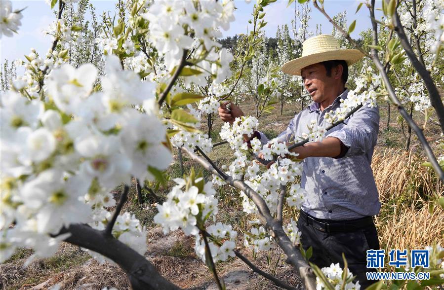 3月22日,云南省曲靖市沾益區(qū)炎方鄉(xiāng)炎方村的農(nóng)民在果園里作業(yè)。春季里,云南省曲靖市沾益區(qū)鄉(xiāng)村果園里的桃花梨花競相綻放,景色秀美,吸引游人前來觀光。新華社記者楊宗友攝