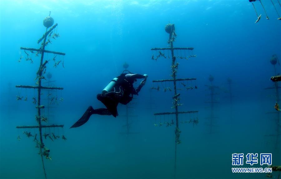 3月28日,在位于海南三亞蜈支洲島旅游區(qū)的海洋牧場,工作人員在進行巡護記錄。近日,位于海南三亞蜈支洲島旅游區(qū)的海洋牧場復(fù)工,海底作業(yè)逐漸恢復(fù)正常,開始進行人工魚礁吊裝擺位、水下監(jiān)控清理以及日常巡護等工作。據(jù)介紹,人工魚礁有利于魚類種類增加和數(shù)量提高,蜈支洲島海域海洋牧場人工魚礁表面附著珊瑚、貝類、藻類等生物種類達120余種。新華社記者楊冠宇攝