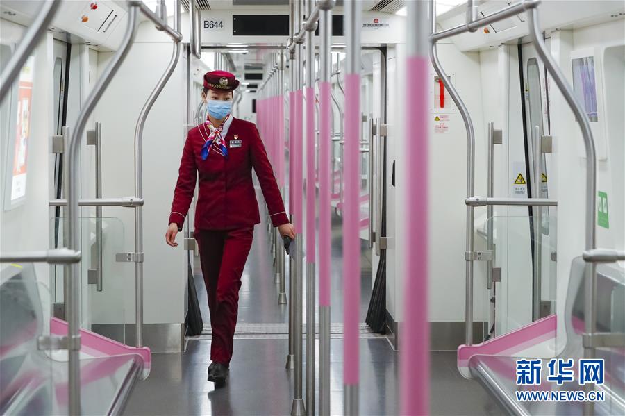 3月28日,武漢地鐵運營有限公司司機吳亞在常青車輛段巡視車輛內(nèi)部情況。新華社記者沈伯韓攝