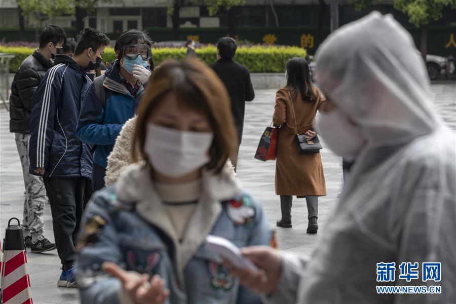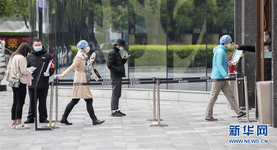 3月30日,顧客排隊(duì)進(jìn)入武商國(guó)際廣場(chǎng)。當(dāng)日,武漢市多家商場(chǎng)開門迎客。新華社記者費(fèi)茂華攝