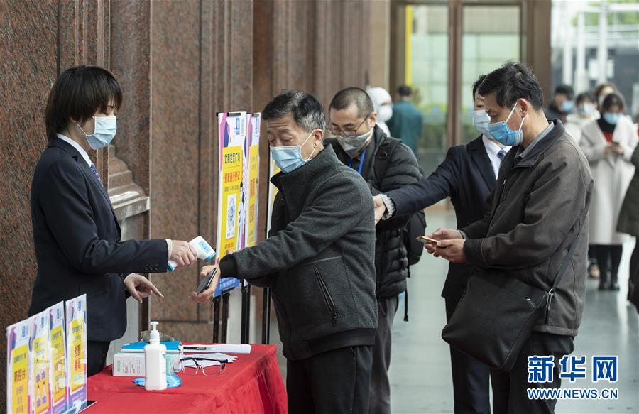 3月30日,在武商世貿(mào)廣場(chǎng),工作人員在為顧客測(cè)量體溫。當(dāng)日,武漢市多家商場(chǎng)開門迎客。新華社記者費(fèi)茂華攝