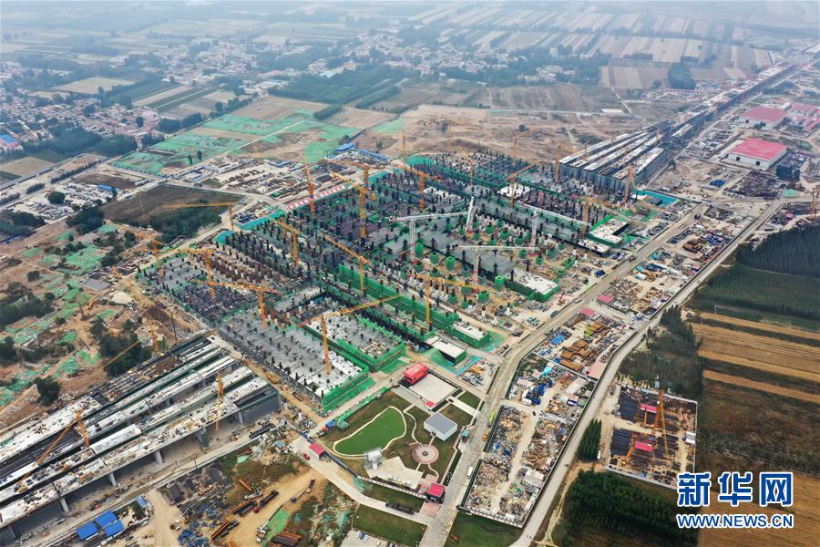 建設(shè)中的雄安站(10月10日無人機(jī)拍攝)。新華社記者邢廣利攝