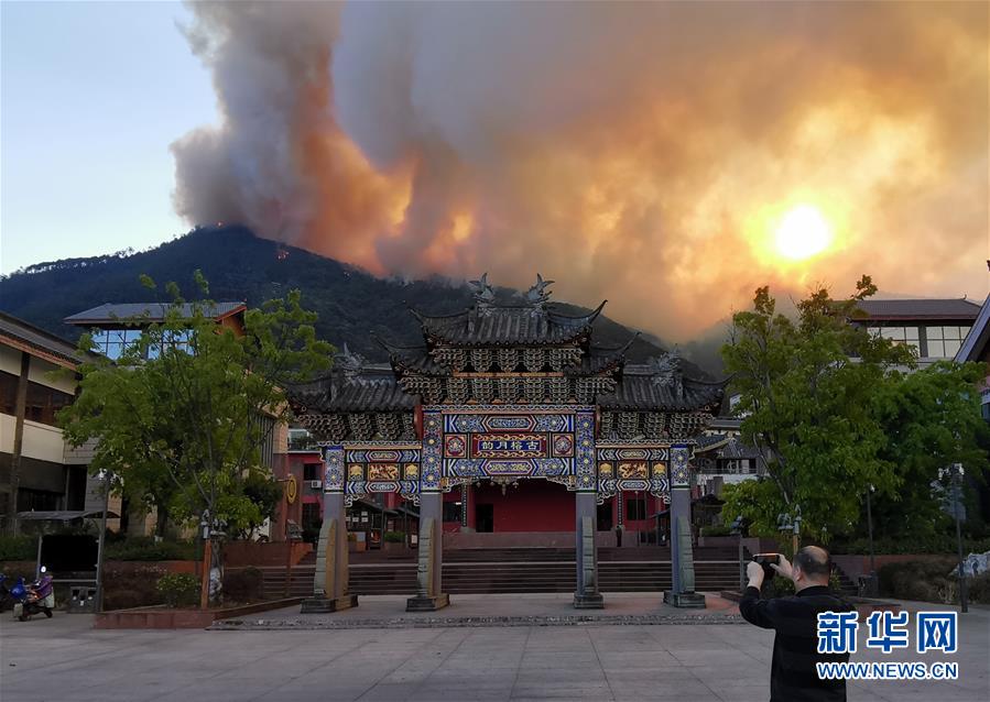 31日16時(shí)左右,記者來(lái)到西昌市瀘山風(fēng)景區(qū)的廣場(chǎng),瀘山上不斷升起滾滾濃煙,空氣中彌漫著濃厚的煙霧,風(fēng)力不斷加大,在短短一小時(shí)之內(nèi),濃煙變成明火,無(wú)人機(jī)拍攝的畫(huà)面顯示,火勢(shì)正在山脊蔓延。
