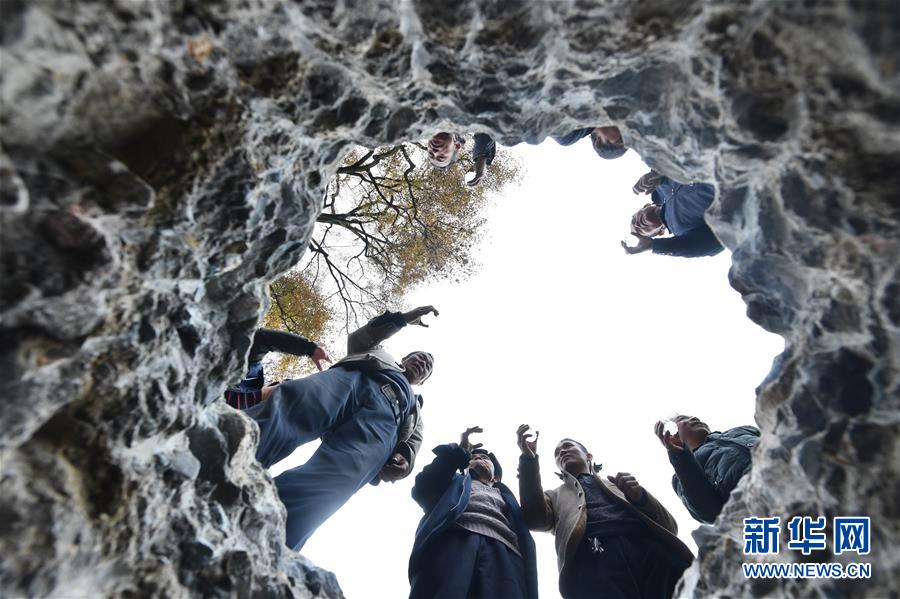 烏英苗寨村民在立蘆笙柱前商量相關(guān)事宜(12月22日攝)。新華社記者黃孝邦攝