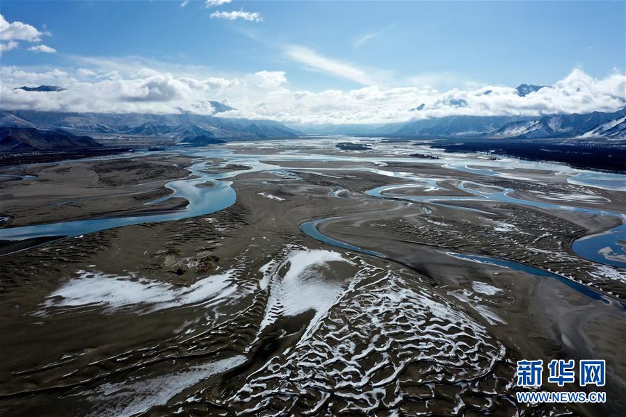 這是3月24日拍攝的雅魯藏布江雪景(無(wú)人機(jī)照片)。新華社記者孫非攝