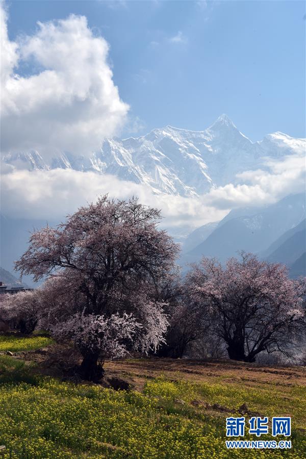 南迦巴瓦峰下盛開(kāi)的桃花(4月1日攝)。新華社記者黃豁攝