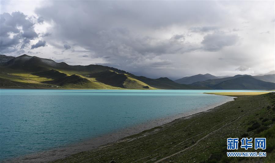8月28日拍攝的羊卓雍錯(cuò)風(fēng)光。新華社記者李鑫攝