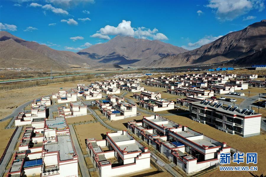 拉薩市堆龍德慶區(qū)古榮鄉(xiāng)榮瑪高海拔生態(tài)搬遷點(diǎn)一景(4月1日攝,無人機(jī)照片)。新華社記者 詹彥 攝