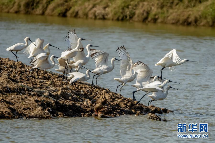 黑臉琵鷺“長(zhǎng)駐”閩江口濕地
