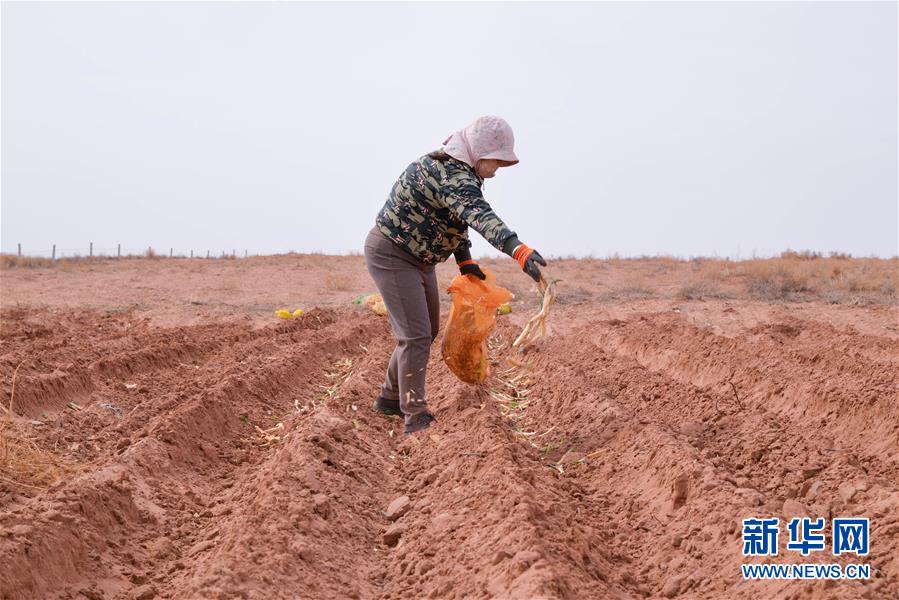 4月15日,農(nóng)民在杭錦旗道勞呼都格嘎查的農(nóng)田里播撒紅蔥苗。春種時節(jié),在內(nèi)蒙古鄂爾多斯市杭錦旗道勞呼都格嘎查,農(nóng)民忙著播種紅蔥。在鄂爾多斯高原種植的紅蔥耐旱耐寒,具有較好的經(jīng)濟(jì)效益。新華社記者徐欽攝