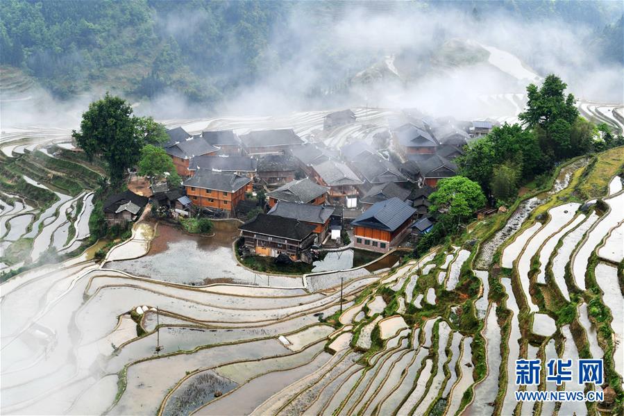 貴州省從江縣加榜鄉(xiāng)黨扭村苗寨景觀(4月17日攝)。貴州省從江縣把人居環(huán)境整治作為脫貧攻堅(jiān)工作的一項(xiàng)重要舉措來(lái)抓,對(duì)鄉(xiāng)村規(guī)劃范圍內(nèi)長(zhǎng)期無(wú)人居住的危房、廢棄禾倉(cāng)、棚圈、柴草房和房前屋后的殘?jiān)珨啾诘冗M(jìn)行清理整治,進(jìn)行復(fù)墾復(fù)綠,同時(shí)開(kāi)展農(nóng)戶衛(wèi)生和村寨環(huán)境整治,做到鄉(xiāng)村環(huán)境干凈、衛(wèi)生、整潔,扮靚美麗鄉(xiāng)村。新華社記者楊文斌攝
