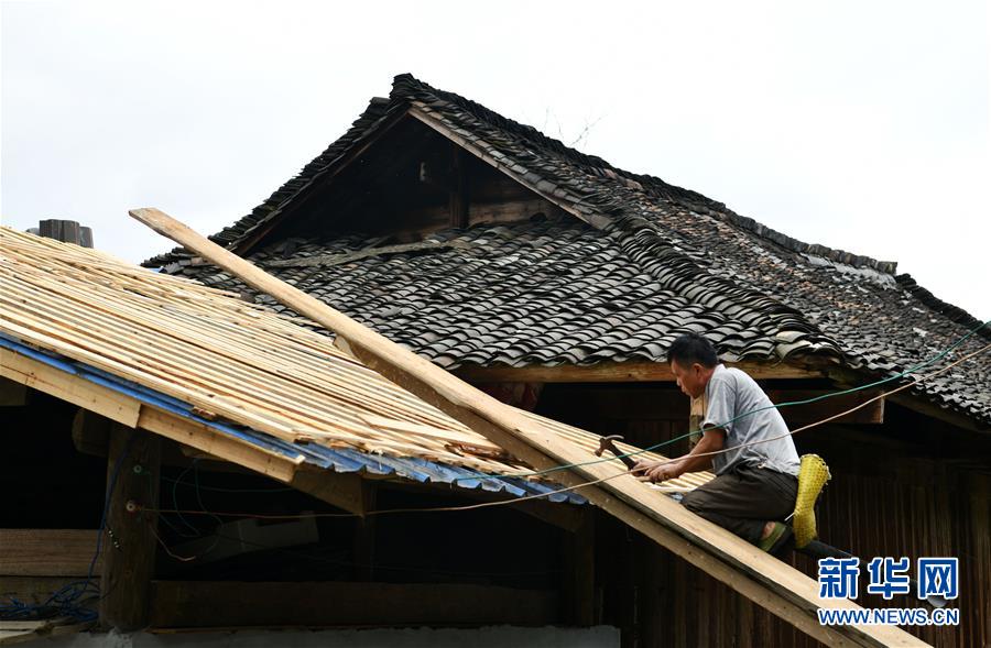 貴州省從江縣加榜鄉(xiāng)黨扭村村民在整治吊腳樓風(fēng)貌(4月16日攝)。貴州省從江縣把人居環(huán)境整治作為脫貧攻堅(jiān)工作的一項(xiàng)重要舉措來(lái)抓,對(duì)鄉(xiāng)村規(guī)劃范圍內(nèi)長(zhǎng)期無(wú)人居住的危房、廢棄禾倉(cāng)、棚圈、柴草房和房前屋后的殘?jiān)珨啾诘冗M(jìn)行清理整治,進(jìn)行復(fù)墾復(fù)綠,同時(shí)開展農(nóng)戶衛(wèi)生和村寨環(huán)境整治,做到鄉(xiāng)村環(huán)境干凈、衛(wèi)生、整潔,扮靚美麗鄉(xiāng)村。新華社記者楊文斌攝