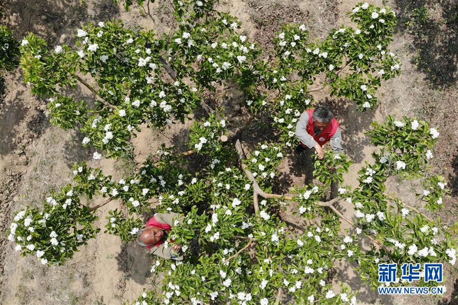 4月26日,農(nóng)民在河北省清河縣馬屯紅果種植專業(yè)合作社的山楂種植區(qū)內為果樹疏花(無人機照片)。4月下旬以來,河北省清河縣2萬余畝山楂樹競相開花,成為一道亮麗的風景線。清河縣年產(chǎn)山楂7.5萬余噸,山楂種植已成為當?shù)剞r(nóng)民的重要增收途徑。新華社記者牟宇攝