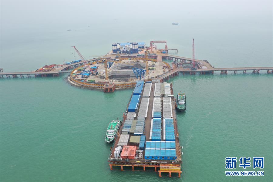 這是4月25日拍攝的伶仃洋大橋施工區(qū)與海上生活區(qū)(無(wú)人機(jī)照片)。新華社記者盧燁攝