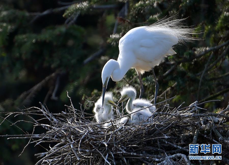 象山森林公園內(nèi)的白鷺(4月26日攝)。近日,在江西省南昌市新建區(qū)象山森林公園內(nèi),已安家筑巢的大批鷺鳥正陸續(xù)孵化后代,一派生機(jī)勃勃的景象。新華社記者彭昭之?dāng)z