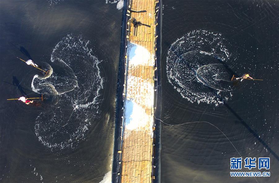 4月27日,莆田鹽場(chǎng)的工人在曬鹽池里忙碌(無(wú)人機(jī)照片)。莆田鹽場(chǎng)位于福建省莆田市秀嶼區(qū)東嶠鎮(zhèn),辛勤勞作的鹽工、縱橫交錯(cuò)的曬鹽池,共同構(gòu)成如畫(huà)的風(fēng)景。新華社記者魏培全攝