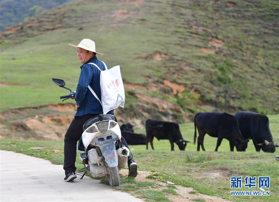 李義成騎車前往堯告村高山天然牧場,準(zhǔn)備了解養(yǎng)牛場的養(yǎng)殖情況(4月26日攝)。新華社記者黃孝邦攝
