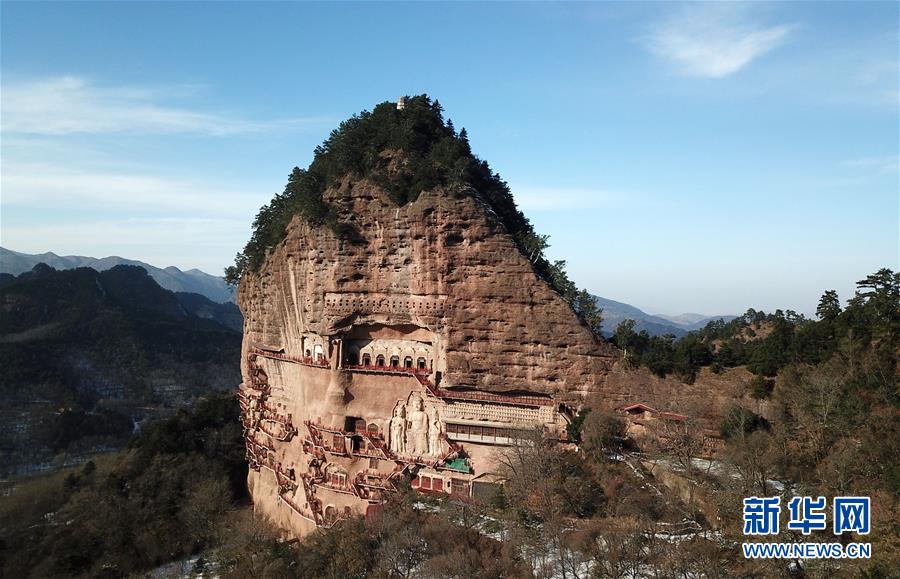 12月26日無人機(jī)拍攝的麥積山石窟。新華社記者馬寧攝