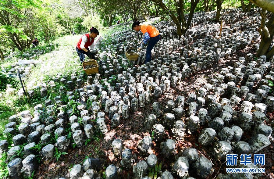村民在劍河縣岑松鎮(zhèn)巫亮村林下仿野生食用菌基地采摘木耳(4月27日攝)。近年來,貴州省黔東南苗族侗族自治州劍河縣充分利用林下土地培育木耳,既不耽誤林木生長,又發(fā)展了食用菌產業(yè)。目前,該縣采取“龍頭企業(yè)+合作社+貧困戶”的合作模式,大力推廣林下木耳種植,帶動農民增收。新華社記者楊文斌攝