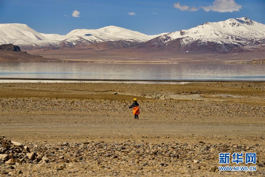 4月30日,一名藏族小孩在當穹錯湖畔玩耍。當穹錯地處西藏那曲市尼瑪縣南部,湖面海拔4475米。暮春時節(jié),湖水碧藍清亮,讓人仿佛置身仙境。新華社記者田金文攝