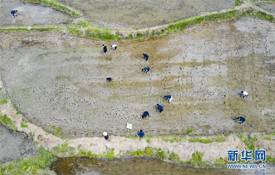 5月1日,游客在江西省新余市渝水區(qū)良山鎮(zhèn)下保村體驗農(nóng)耕樂趣(無人機拍攝)。“五一”假日期間,人們以多種方式放松心情、享受假日。新華社發(fā)(趙春亮攝)