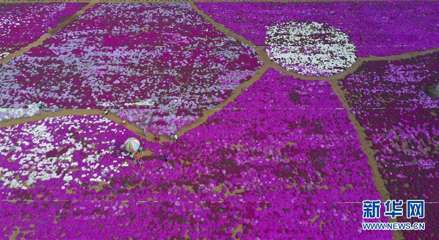 5月2日,市民在河北唐山遵化市小廠鄉(xiāng)一處農(nóng)業(yè)觀光園賞花游玩(無(wú)人機(jī)照片)?!拔逡弧奔偃掌陂g,人們以多種方式放松心情、享受假日。新華社發(fā)(劉滿(mǎn)倉(cāng)攝)