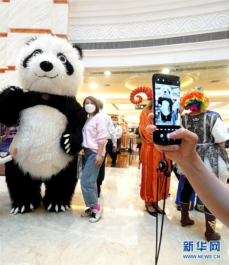 5月5日,顧客在上海環(huán)球港商場與大熊貓人偶合影。5月4日晚,上海首次啟動大規(guī)模商業(yè)促銷活動“五五購物節(jié)”,多家在線新經(jīng)濟(jì)企業(yè)參與,通過線上流量優(yōu)勢反哺線下賣場,實現(xiàn)電商與實體零售融合互動,激活消費(fèi)潛力、驅(qū)動消費(fèi)復(fù)蘇。據(jù)“上海發(fā)布”的消息,截至5日14時12分,“五五購物節(jié)”上海地區(qū)消費(fèi)支付總額已超100億元。新華社記者陳飛攝