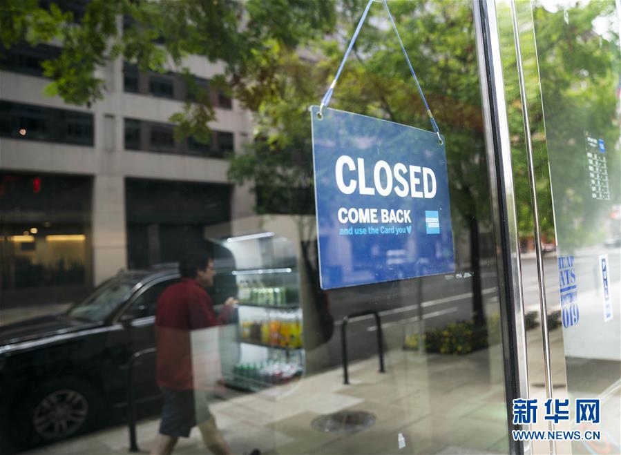 5月6日,在美國(guó)首都華盛頓,一家披薩店因新冠疫情暫時(shí)關(guān)閉。美國(guó)自動(dòng)數(shù)據(jù)處理公司(ADP)6日公布的數(shù)據(jù)顯示,由于新冠疫情沖擊美國(guó)經(jīng)濟(jì)和企業(yè),4月美國(guó)私營(yíng)部門(mén)大幅削減約2023.6萬(wàn)個(gè)就業(yè)崗位。新華社記者劉杰攝