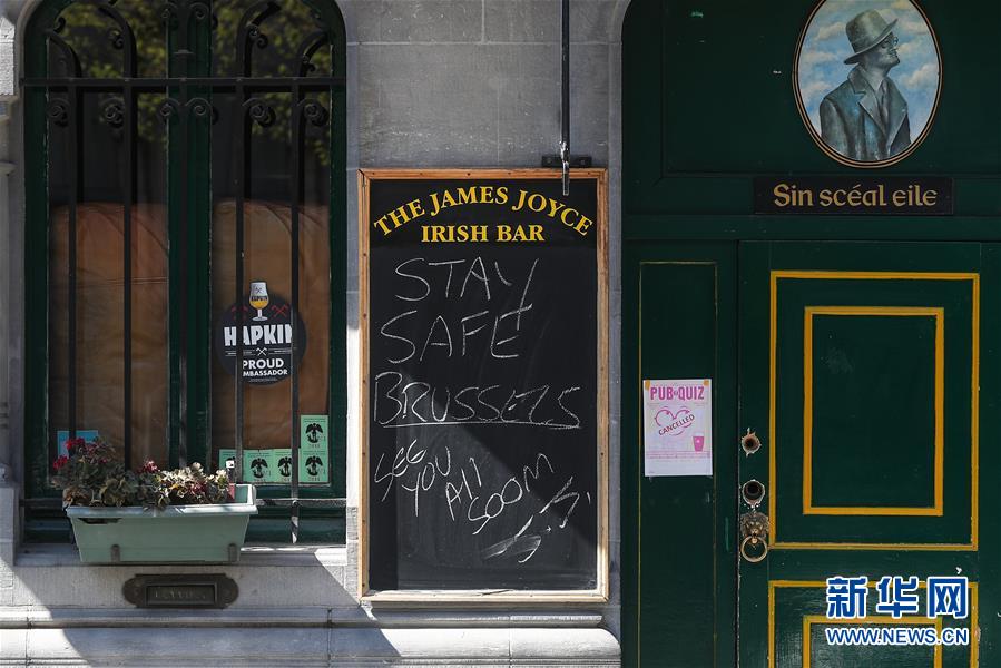 歐盟委員會5月6日預測,受新冠疫情影響,2020年歐洲經(jīng)濟將出現(xiàn)“歷史性衰退”,歐盟經(jīng)濟將萎縮7.5%,歐元區(qū)經(jīng)濟將萎縮7.75%。4月6日,比利時布魯塞爾的一家停業(yè)酒吧的門外黑板上寫著“保持安全,布魯塞爾,再會!”。新華社記者鄭煥松攝